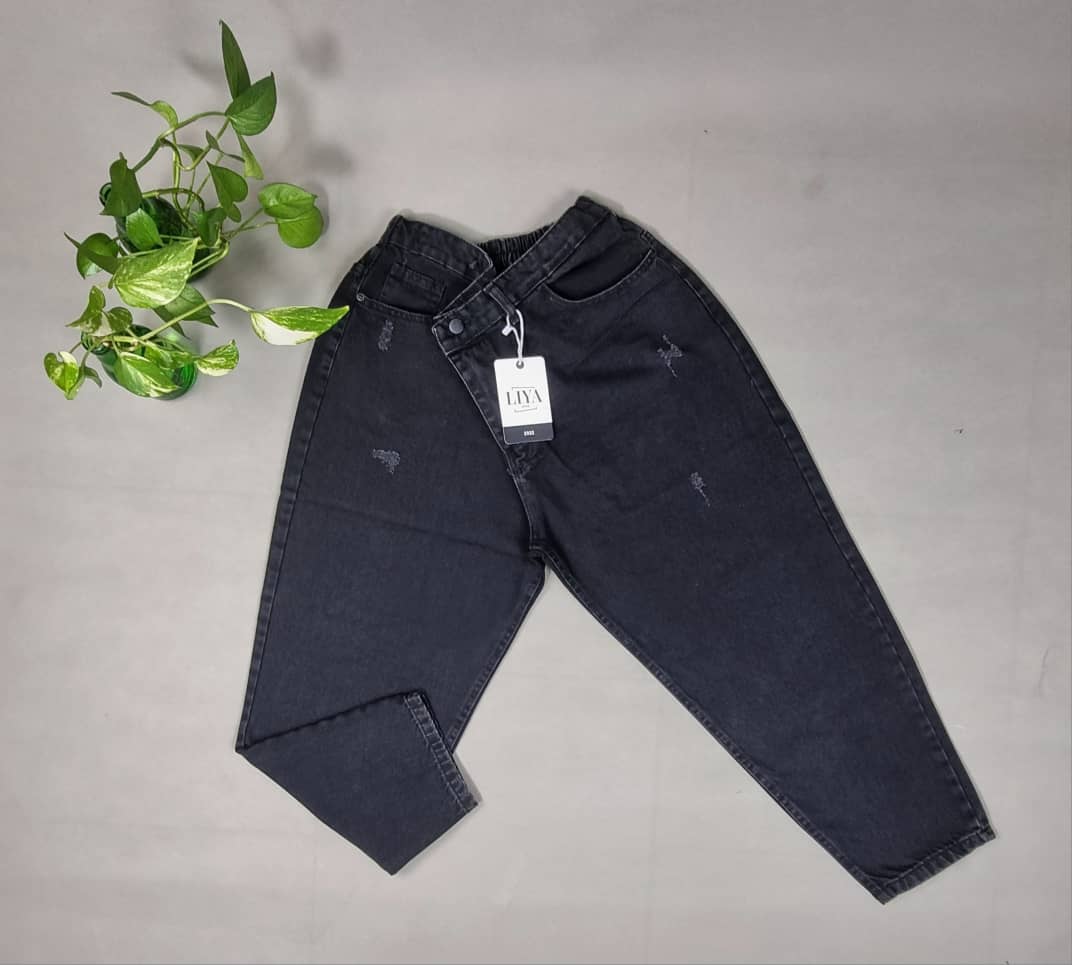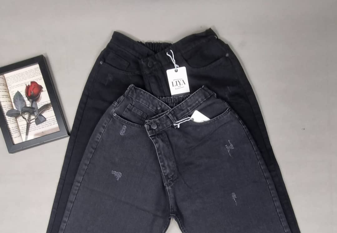 شلوار مام استایل زغالی و مشکی پشت کمرکش و فاق بلند سایزبندی ۴۸_۵۰_۵۲_۵۴ سنگشور شده با قد ۹۰ بسیار خوش فرم وعالی