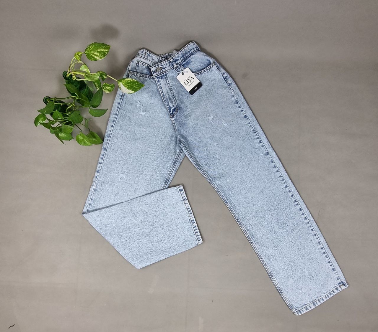 شلوار جین نیم بگ ابی روشن وکثیف شور سایزبندی: ۴۸_۵۰_۵۲_۵۴ فاق بلنده پشت کمرکش قد شلوار: ۱۰۷ سنگشور شده ونرم لطیف