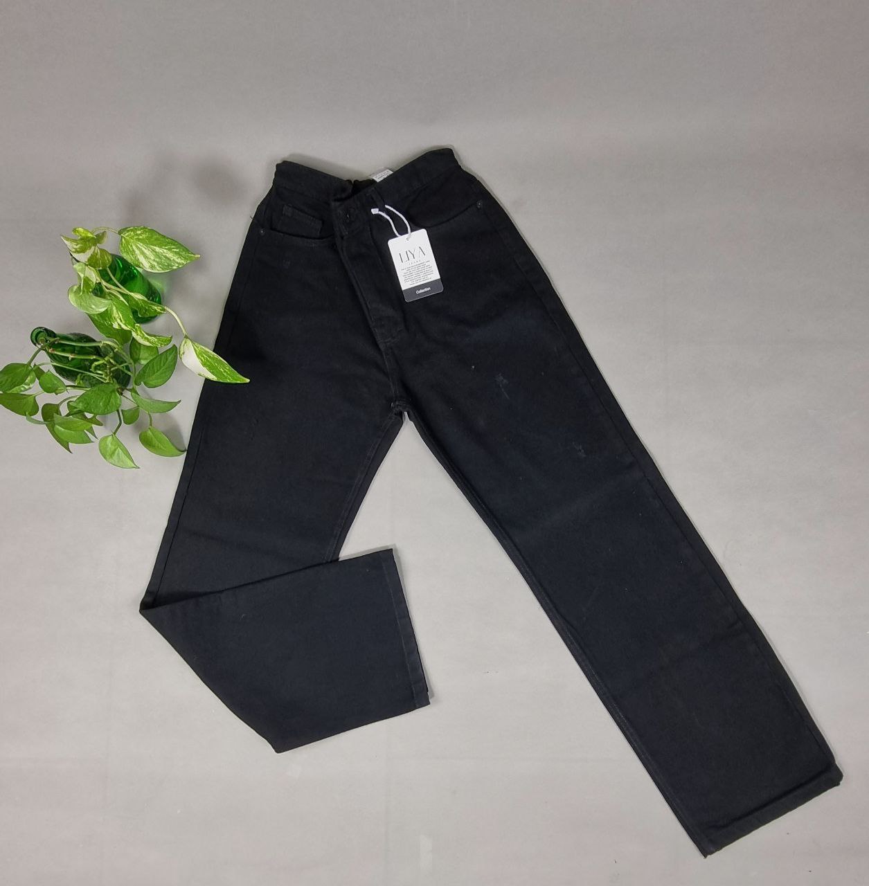 شلوار جین نیم بگ مشکی و زغالی قد شلوار ۱۰۸ پشت کمرکش و فاق بلنده سایزبندی: ۳۸_۴۰_۴۲_۴۴_۴۶ سنگشور شده وبسیار نرم ولطیفه وبا ضمانت رنگ ثابت